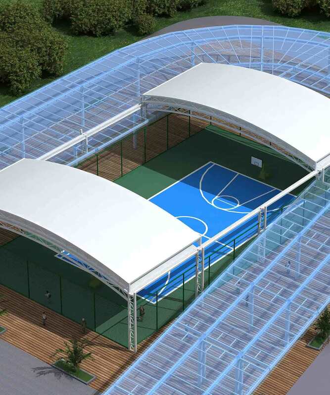 Δομή μεμβράνης PTFE για ύφασμα οροφής μεγάλου μήκους σταδίου
